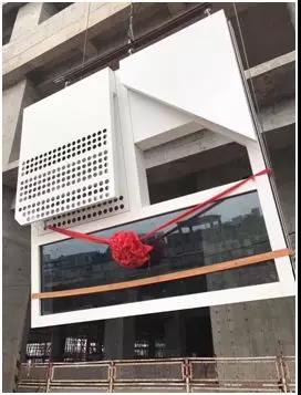(第一塊雅泰裝配式單元幕墻板塊順利起吊安裝)